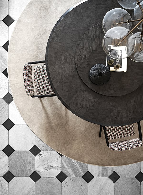Chair with black open pore stained solid ash structure. Also available in natural ash, tobacco stained open pore or "Pure" white open pore stained ash. Seat with inside structure in wood and by-products padded in non-deformable polyurethane foam. Backrest made of structural polyurethane dipped in flexible polyurethane foam. Covered by fabric or leather as per samples. Not removable cover.