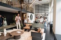 Protagonisti dello spazio di Via Cavallotti n.16, alcuni pezzi storici del brand acconto alle ultime novità della collezione 2023, tra i cui i tavolini monomaterici Re-verre realizzati in polvere di vetro riciclato.